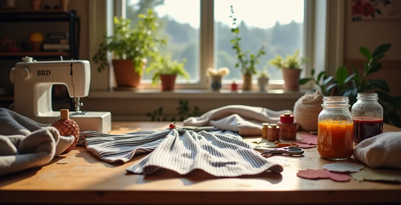 La broderie, quant à elle, est une solution chirurgicale et poétique. Elle permet de couvrir une petite tache (auréole, accroc) avec un motif. Quelques points de base suffisent pour créer une fleur, un motif géométrique ou même juste une texture colorée. Cette technique transforme un défaut en point focal, un détail qui attire l’œil et raconte une histoire. Le choix entre les deux dépend de l’ampleur du « dégât » et de l’esthétique que vous recherchez : une transformation globale avec la teinture, ou un détail précieux avec la broderie.
